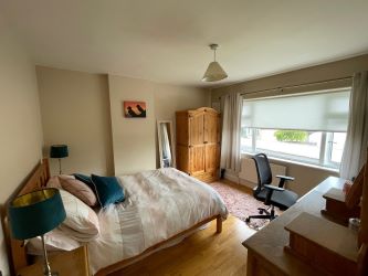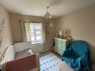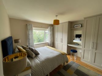 This is a large family bathroom which has impressive modern tiling from floor to ceiling. A spacious shower provides for hot water on demand and all the bathroom ware was fitted as new in 2018 and includes a centre light piece, wall mounted towel radiator, wall mounted light piece and a built in storage cabinet under the sink. There is also a spacious hot press which is shelved for storage.