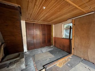 Vinyl Floor, Tiled Fireplace, Shelving, Power Points.