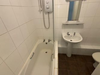 Ceramic Floor, W.C., W.H.B., Bath, Electric Shower, Fully Tiled.