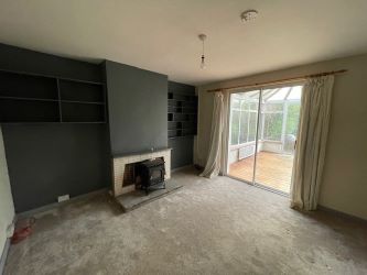 Carpet, Radiator, Fireplace with Stove Insert, Power Points.