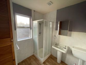 Vinyl Floor, Radiator, W.C., W.H.B., Electric Shower Unit, Hot Press, Part Tiled Walls.