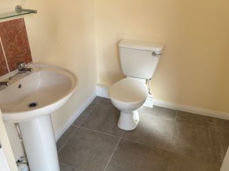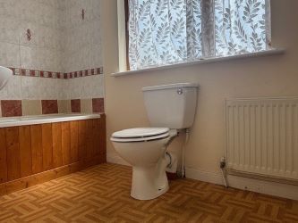 Vinyl Floor, Radiator, W.C., W.H.B, Shower in Bath, Part Tiled.