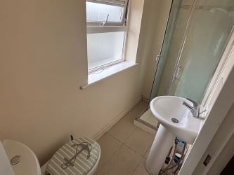 Ceramic Tiled Floor, W.C., W.H.B., Bath with Electric Shower, Part Tiled.