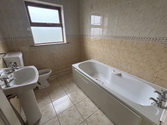 Ceramic Tile Floor, W.C., W.H.B., Bath, Electric Shower, Radiator, Fully Tiled.