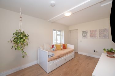Laminate Wood Floor, Radiator, Blinds, Power Points.