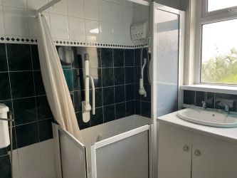 Vinyl Floor, W.C., W.H.B., Electric Shower Unit, Hot Press, Fully Tiled Walls.